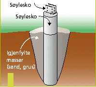 Pilaren graves til fjell, eller 60–70 cm ned i bakken dersom grunnen ikke er telefarlig.